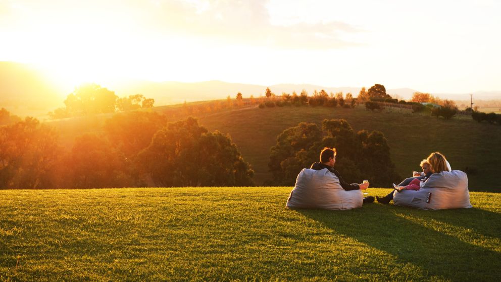 Located in the Riverina region of southern NSW, Hillview comes with plenty of accommodation options, from glamping safari tents to modern one-bedroom cottages and a four-bedroom lodge, each with its own barbecue and kitchen facilities. Your backyard is 400 hectares of rolling countryside, home to alpacas, horses, chickens, sheep and goats – there are three daily animal feedings you can get involved in. Or just chill out on your veranda with a bottle of local wine and a cheese board, while keeping watch for visiting kangaroos.