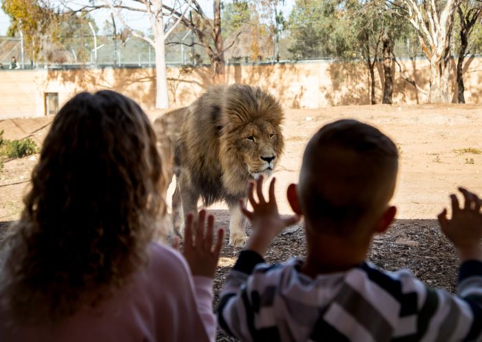You won’t have to go far to your accommodation tonight. Billabong Camp is inside the zoo, close to the Lion Pride Lands – you might even hear the lions roaring at night! The spacious, heavy-duty canvas tents are already set up on the edge of the billabong and are equipped with bedding, pillows and linen. Once the zoo has closed, you’ll get to enjoy a private viewing of the lions, followed by a barbecue dinner and then another guided tour of the native animal area. Have a late supper under the stars, then slip into your sleeping bags for a night in the wild.