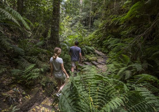 Couple enjoying a scenic walk along the Grand Canyon Track, Blackheath