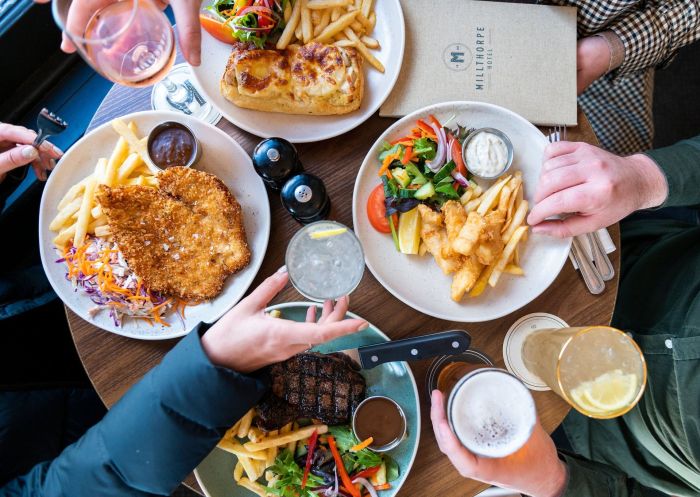 It’s just 20km from the heart of Orange to the tiny town of Millthorpe, where The Millthorpe Hotel is next to the railway station and served its first beer in 1898. It has a cosy front bar, stylish restaurant and large grassy beer garden. There’s a good range of beers as well as local wines available by the glass, and an extensive menu of pizzas, pastas and pub classics, including a selection just for kids.