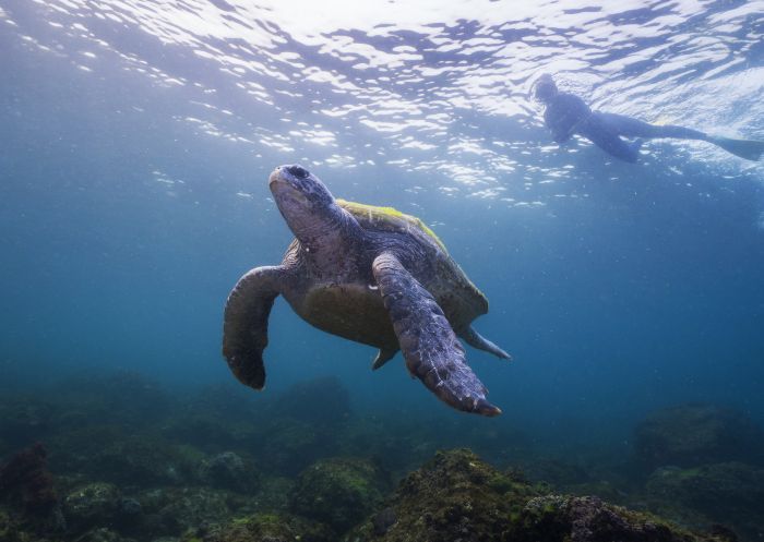 Located 600m offshore, Cook Island is easily accessible in a quick run out from the Tweed River. All around the island are rocky reefs in depths from 5m to 20m, with the Northern Ledges one of the best places to see numerous turtles. On the top of this wall are coral gardens, sea anemones full of anemonefish, abundant small reef fish and countless green turtles. Turtles gather in this area to get cleaned, and it is common to see a dozen or more lingering in the shallows.