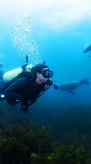 During the cooler months, dive with up to 1,800 fur seals as well as pods of dolphins; listen out for whale song from migrating humpbacks. Most seals frolic in water between three to 15m deep, making this an accessible experience for divers of all levels.