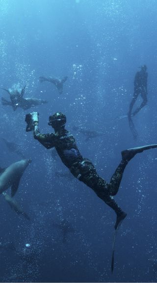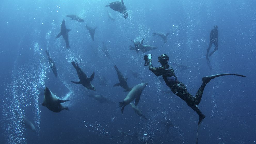 During the cooler months, dive with up to 1,800 fur seals, pods of dolphins and listen out for whale song from migrating humpbacks. Most seals frolic between three to 15 metres of water, making this an accessible experience for divers of all levels. Around 200 to 500 seals stay around for the summer months and in the winter months, look out for humpback whales.