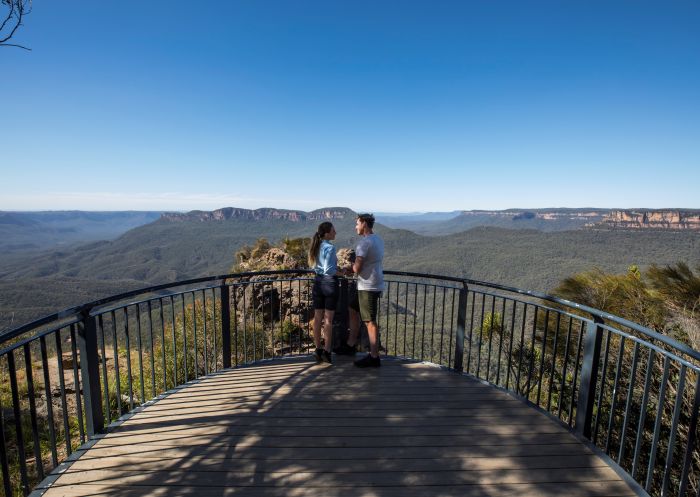 From Lawson, it's just a 10-minute drive through pristine bushland to Wentworth Falls Picnic Area, where you can walk to the falls themselves. Start at Jamison Lookout, which boasts a sweeping vista of Jamison Valley. Then head to the Wentworth Falls Track and down log steps to Wentworth Lookout, making sure to keep an eye out for glimpses of the waterfall. For a closer view, take the sidetrack to Fletchers Lookout to get a view of the waterfall from up close.
