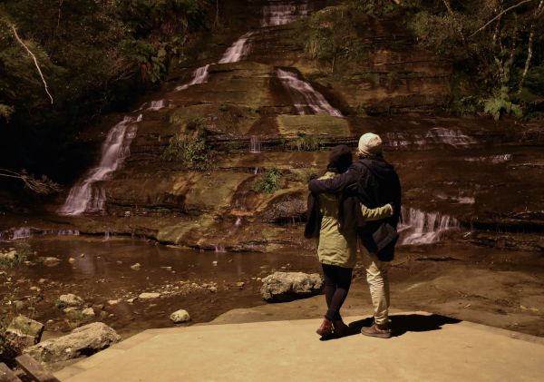 Once the sun sets, enjoy the natural beauty of Katoomba in a new light with the Katoomba Falls Reserve Night-lit Walk. At dusk, follow the trail of lights along a 1.3km route and see illuminated cascades, rock walls and natural formations such as Orphan Rock. From select vantage points, you can spy the Three Sisters lit up under the night sky.