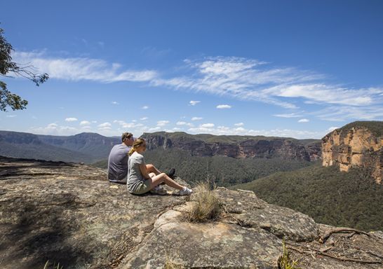 From Leura, drive to Blackheath for a scrumptious lunch of Mediterranean share plates cooked on a 150-year-old ironbark-fuelled oven at Ates. Or, for something on the go, head to This Little Piggy Deli for a great selection of pastries, salads and other homemade treats. After lunch, it’s time to take in the panoramic view from nearby Evans Lookout. Breathe in the refreshing mountain air as you peer out towards the sandstone cliff wall of Grose Valley with Govetts Creek winding across the forested floor. From Evans Lookout, it’s easy to set out on the Grand Canyon Track, a magical trail past waterfalls, rock walls and pristine rainforest brimming with native plants.