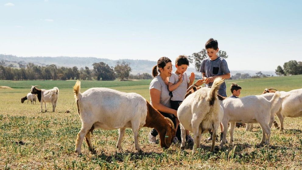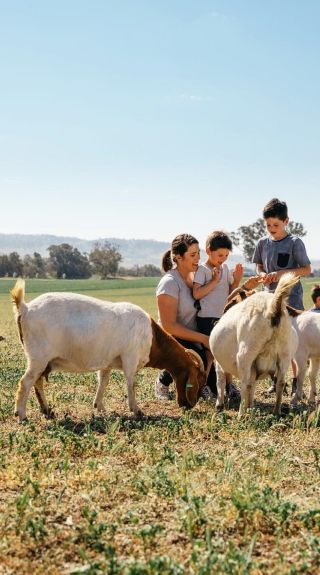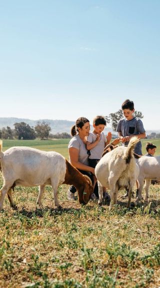 If you want your family to have a real working farm experience, you’ve come to the right place. Check in to Wallendbeen’s guest cottage (with space to sleep four) and you can get your hands dirty collecting fresh eggs, foraging in the garden for produce, joining the owners on a walk to feed animals, or even mending fences. Then sleep soundly in the private cottage, which spent most of its life as a regional schoolhouse – today there are comfy beds, a kitchen and neat bathroom.