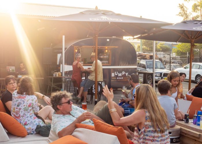 There are plenty of places to perch at Flamin Galah Brewing Co including tables on the front lawn, inside at the bar or in the back beer garden. As well as more than a dozen beers on tap at any time, the brewery produces its own hard sodas and vodka, and has an array of popular cocktails on offer. The Nest, an on-site food truck, dishes up handmade pizzas, crispy chicken bao, tacos, dumpling salad and more.