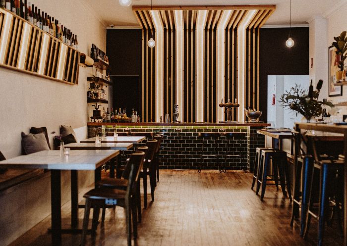 In the trendy little town of Sawtell, which boasts great cafes and boutiques lining beautiful beaches, Bar Que Sera was opened in 2020 by a husband-and-wife team relocating from Melbourne. The relaxed bar/restaurant serves seasonal share plates and bar snacks alongside boutique wine, cocktails and craft beer, celebrating quality independent producers.