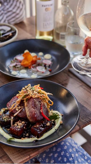 Located at Diggers Beach in Coffs Harbour, Aanuka Beach House's ethos is all about enjoying the sun, salt and surf... with a sundowner spritz in hand, of course. This is the spot for good times with friends and family, with happy hour from Monday to Friday, live music on Saturday and Sunday, bottomless brunches and breakfast buffets all on offer. The menu is focused on resort-inspired plates that embrace the beachside dining atmosphere – think fresh local oysters, Coffs Harbour prawn rolls, fish ceviche and generous seafood platters.