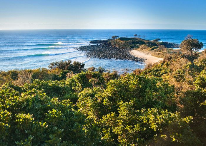 For chic accommodation, head up to Yamba. The Surf Yamba is perched on the headland and offers a heated rooftop plunge pool, or book the Signature Pacific King room at the Pacific Hotel with breathtaking views of the ocean from your private balcony.
