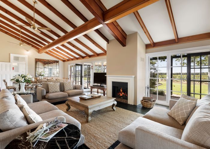 Nearby, at Tinonee Vineyard Estate, the two guest cottages channel south-of-France vibes: think exposed wooden beams and crisp white furnishings. And while you may not want to leave your accommodation, there are 20 hectares of grounds to explore and a garden chess set to play, just outside your front door.