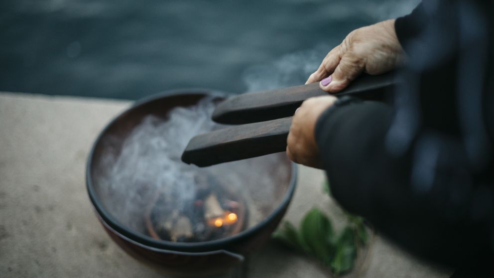 A smoking ceremony at Blues Point Reserve in Sydney as part of the Dreamtime Southern X experience