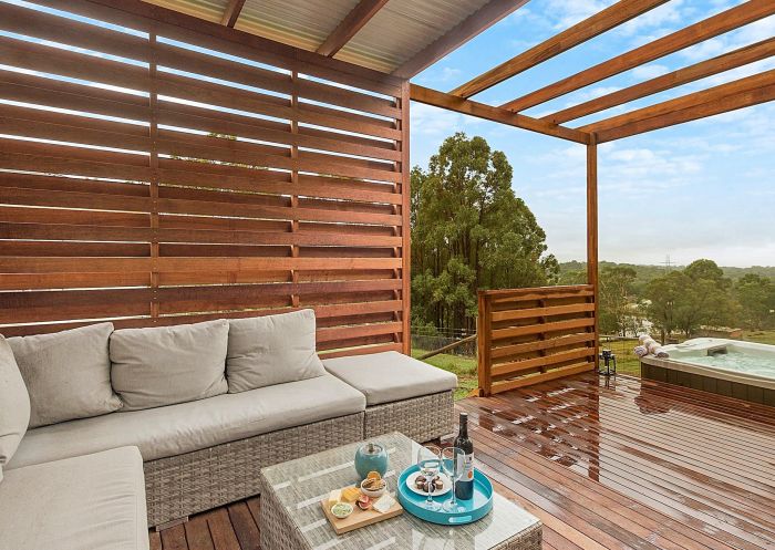 Feel your soul soar when you stay at the adults-only Blueberry Hills enjoying a ridgetop perch just an hour northwest of Sydney, with views over rolling hills where sheep and alpacas graze. You’re welcome to get involved feeding the animals, or just enjoy a stroll around the property or picnic by the dam. There’s space for 10 people in the cosy self-contained cottage, with perks including an alfresco jacuzzi and broad patio for leisurely outdoor meals.
