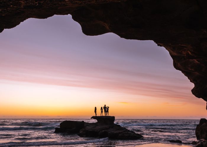 Caves Beach is a beautiful spot to spend a few hours at any time of day. Situated on a long finger of land that separates Lake Macquarie from the Pacific Ocean, the beach is famous for the network of sea caves that can be explored at low tide. And if that low tide coincides with the beginning of the day, be sure to take a camera: between the reflective rockpools, the riotously coloured sky and the caves that will frame your pictures, this site is a sunrise photographer’s dream.