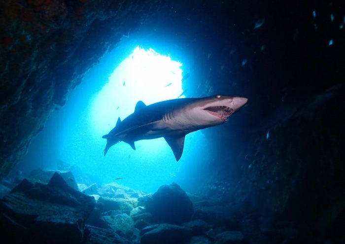 Just off the coast of South West Rocks is one of Australia’s most popular dive sites, Fish Rock Cave. This exciting dive runs 125m through fish rock and it is home to a completely unique ecosystem. At the entrance to the cave, you’ll see pink gorgonian corals, and as you travel through there is the option to surface into an air bubble and chat to your dive buddy. Some of the marine life you are likely to encounter include grey nurse sharks, black cod, large wobbegong sharks, black rays and giant cuttlefish. South West Rocks Dive Centre and Fish Rock Dive Centre both offer guided dives at the site.