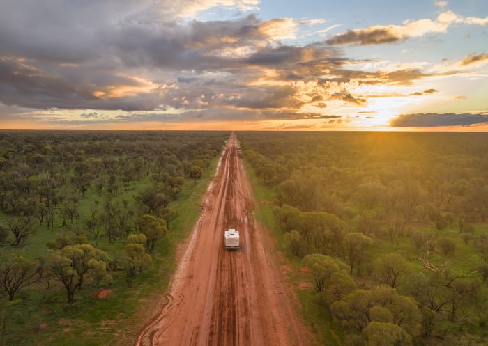 The route follows historic stock routes and the old Cobb Highway past salt plains and abandoned Cobb & Co staging stations – on a network of occasionally unsealed roads as it winds north – passing through country towns that offer the type of welcome you won’t find anywhere but in the outback.