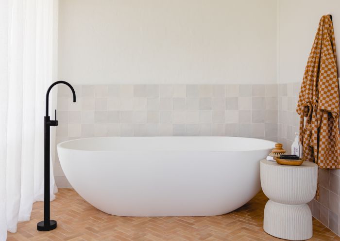 In the know: A 1970s vibe is well and truly alive in the guest rooms – red bricks, pine panelling and rattan – but it’s all been expertly elevated into the modern day with chic lighting, neutral hues, luxury linens and contemporary collectables.