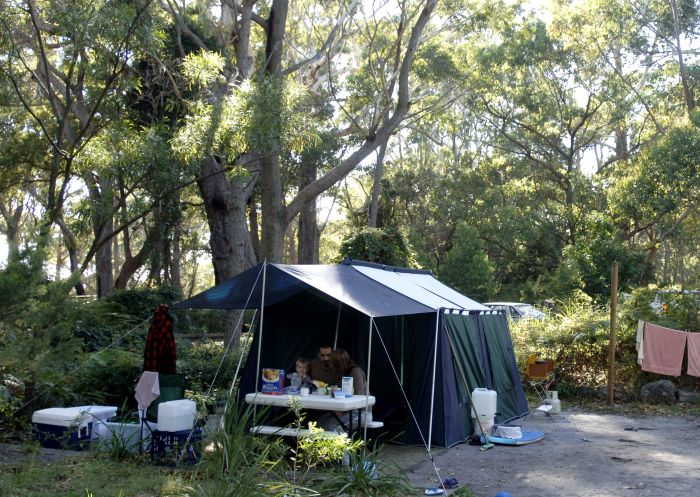 Within Aboriginal-owned and -managed Booderee National Park, this is an idyllic camping ground set among tea trees. You’re steps from the sand and waves of Cave Beach and Bherwherre Beach, both popular surfing spots, and within easy walking distance of Sussex Inlet and Ryans Swamp, a magnet for waterbirds. You need to carry in all equipment (around 300m), but when you arrive you have access to fresh water, public toilets, cold-water showers and barbecues.
