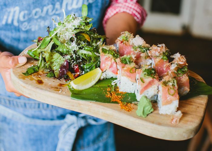 A windy, 20-minute drive through hinterland forest will get you to the tiny village of Federal and the legendary Doma. This has been something of a local secret since it opened in 2012, opened by two Japanese chefs who wanted to bring their own brand of vibrant, creative, fusion cuisine to the Northern Rivers. The sushi is always excellent, but expect a lot of Byron-style grain bowls, interested burgers and bright salads. They occasionally do dinner on Friday or Saturday nights – check their Instagram page for details.