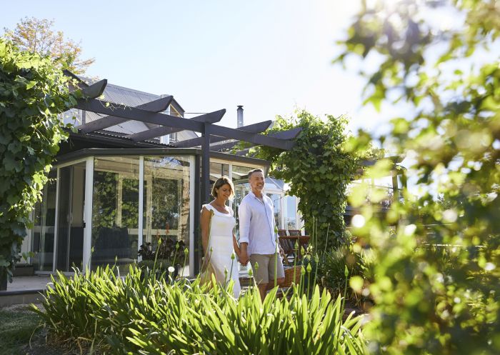Treat yourself to a delicious meal at Zin House restaurant at Lowe Family Wines and then head into the kitchen gardens below for a night at Shed by Zin. This converted artist's studio is perfect for couples, featuring an indoor fireplace, as well as a stovetop and outdoor barbecue if you fancy cooking.