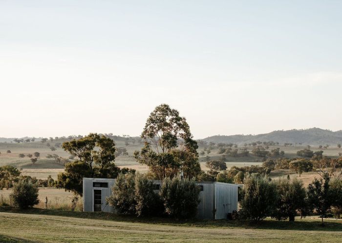If a hot tub is what you’re after from your Mudgee accommodation, then look no further than Evamor Valley. This luxury eco-glamping retreat has six luxury eco-tents set among 80 acres of Mudgee farmland, with luxury interiors including a king bed with premium bedding. Outside is your private hot tub, along with a fire pit for cosy evenings sipping wine on the deck.