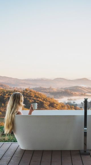 Sierra Escape is the ultimate glamping experience. The luxury eco tents are designed to retain warmth in the winter and let in the breeze during summer. Each tent has an indoor and outdoor freestanding bathtub overlook the beautiful rolling hills of the Mudgee countryside, which is home to native wildlife such as kangaroos, deer and birds. A yoga deck and swimming pool complete the offering.
