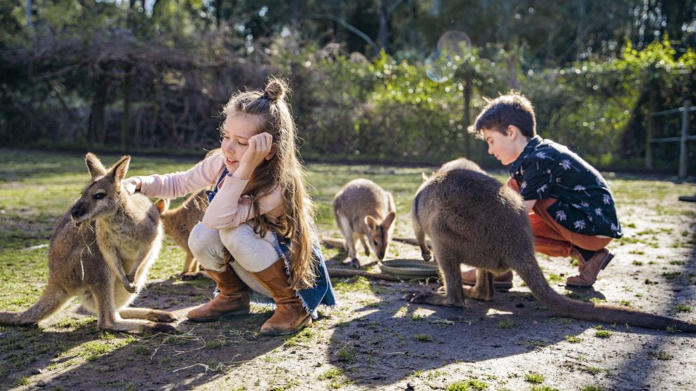 Billabong Zoo at Port Macquarie is home to eastern grey kangaroos and other marsupials such as wallaroos and red-necked and swamp wallabies. Despite its name, the Australian Reptile Park on the Central Coast is home to the Kangaroo Island kangaroo, Goodfellow’s tree kangaroo, yellow-footed rock-wallaby and the parma wallaby.