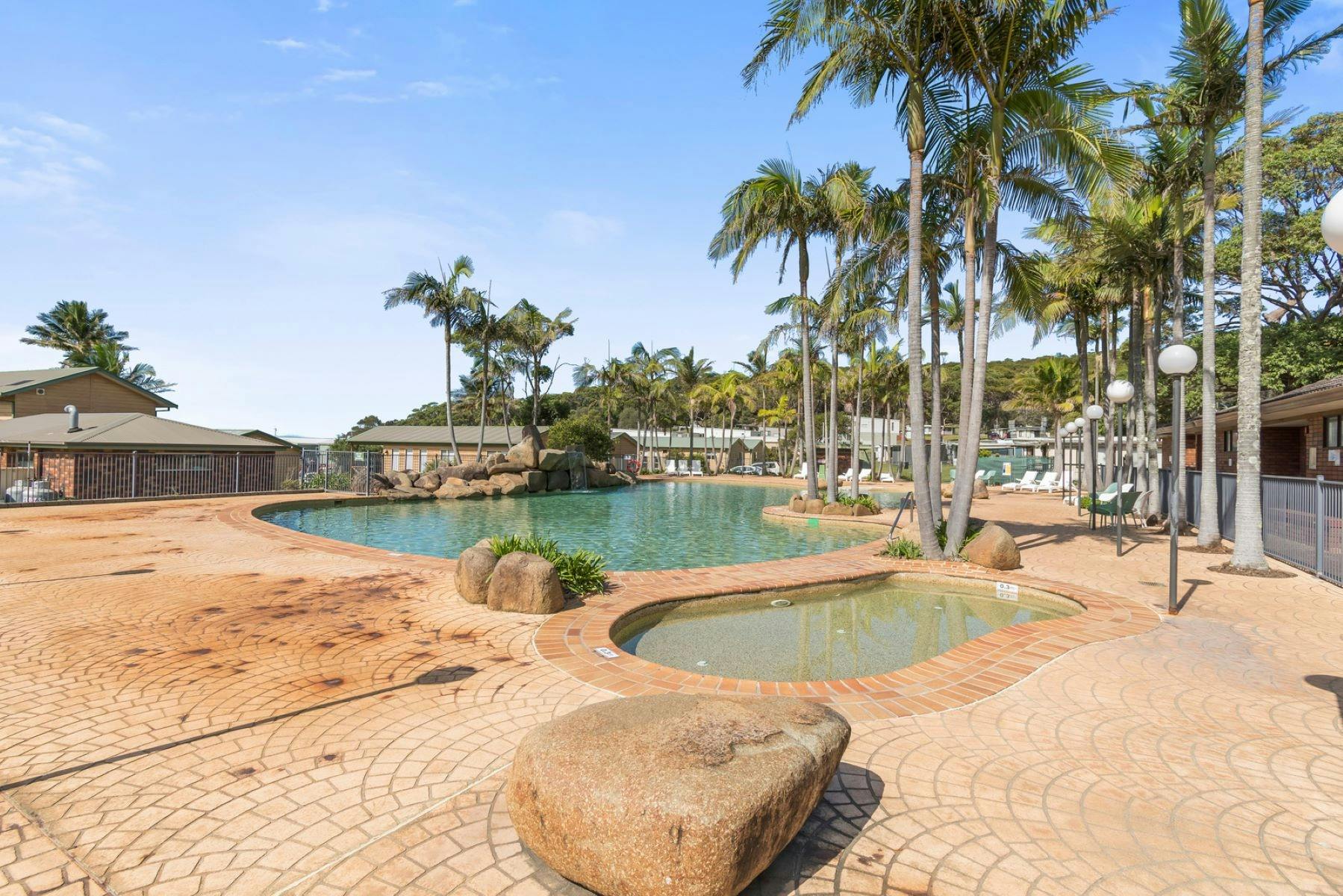 回到营地后,您可以尽情享受各种便利设施,包括全新的游乐场和度假村风格的泳池。虽然泳衣和毛巾是这家度假公园的必备物品,但别忘了带上您的相机,捕捉那些以梅里海滩为家的东部灰袋鼠的身影。