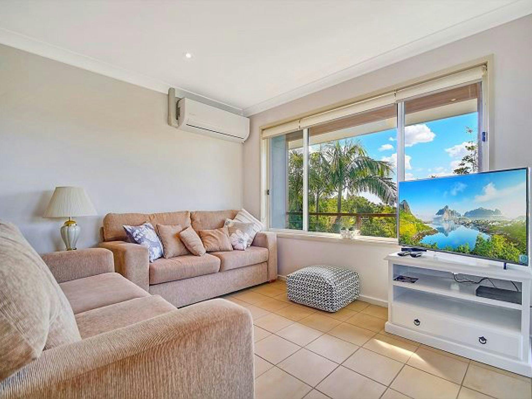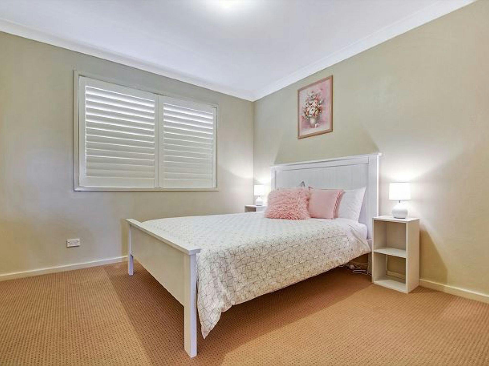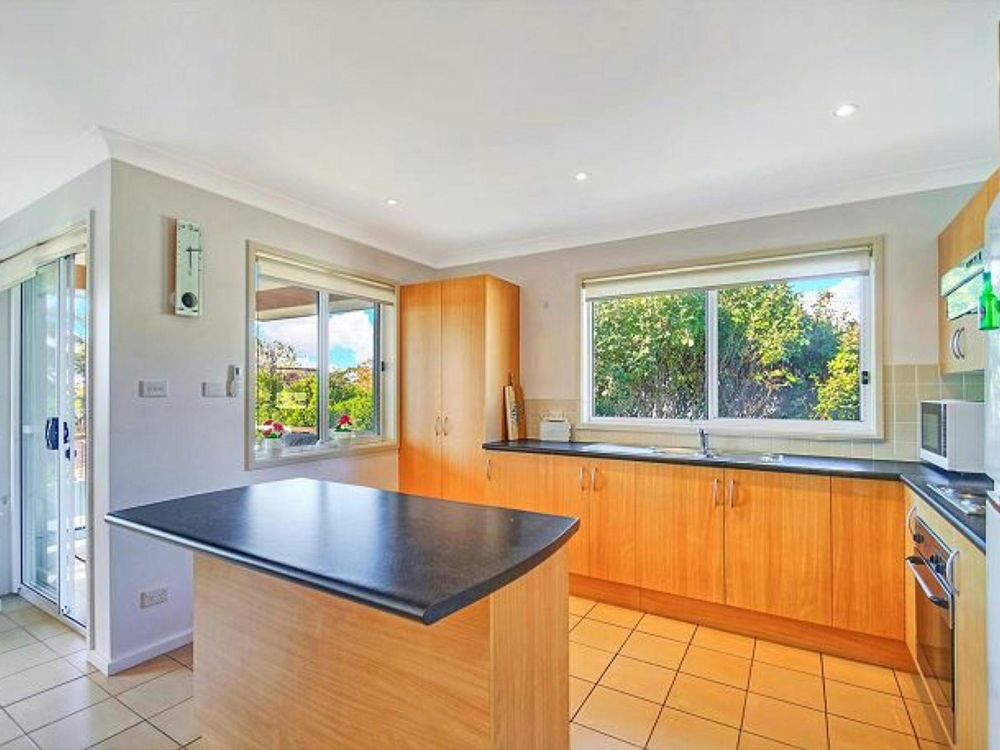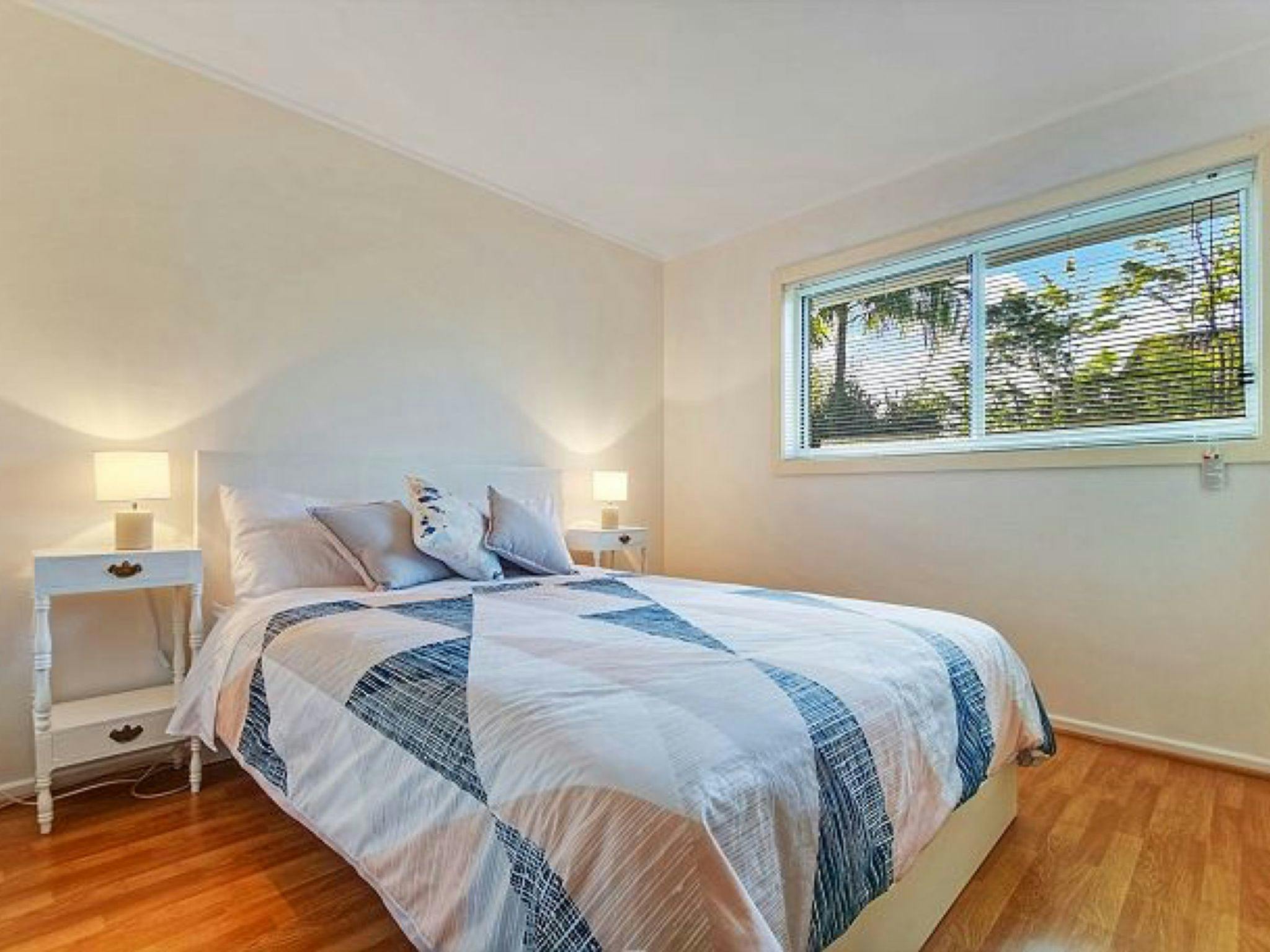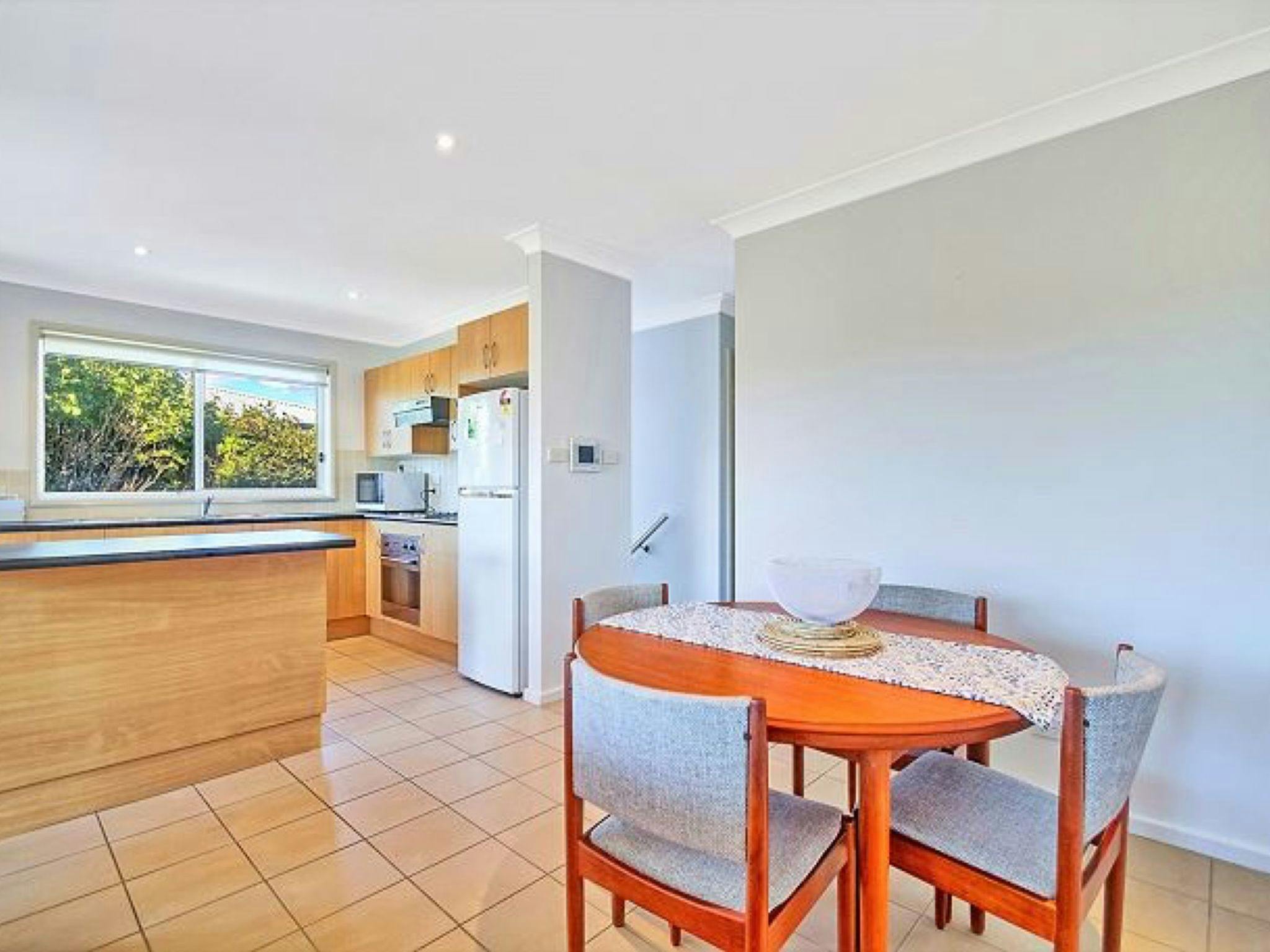楼下宽敞的单车位车库通往一间带大床的卧室。楼下还设有一间洗衣房,可通往完全封闭的后院。楼上采用开放式布局,设有两间宽敞的卧室,均配有嵌入式衣橱、娱乐厨房、用餐区、沙发以及通往阳台的推拉门。您可以一边享用晨间茶,一边欣赏杰维斯湾的美景。