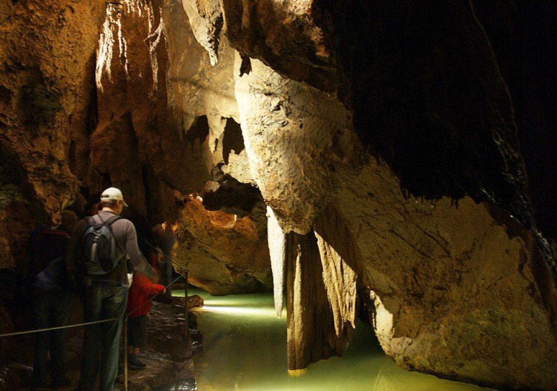 Small group enjoying a tour through a cave system at Jenolan Caves in the Blue Mountains