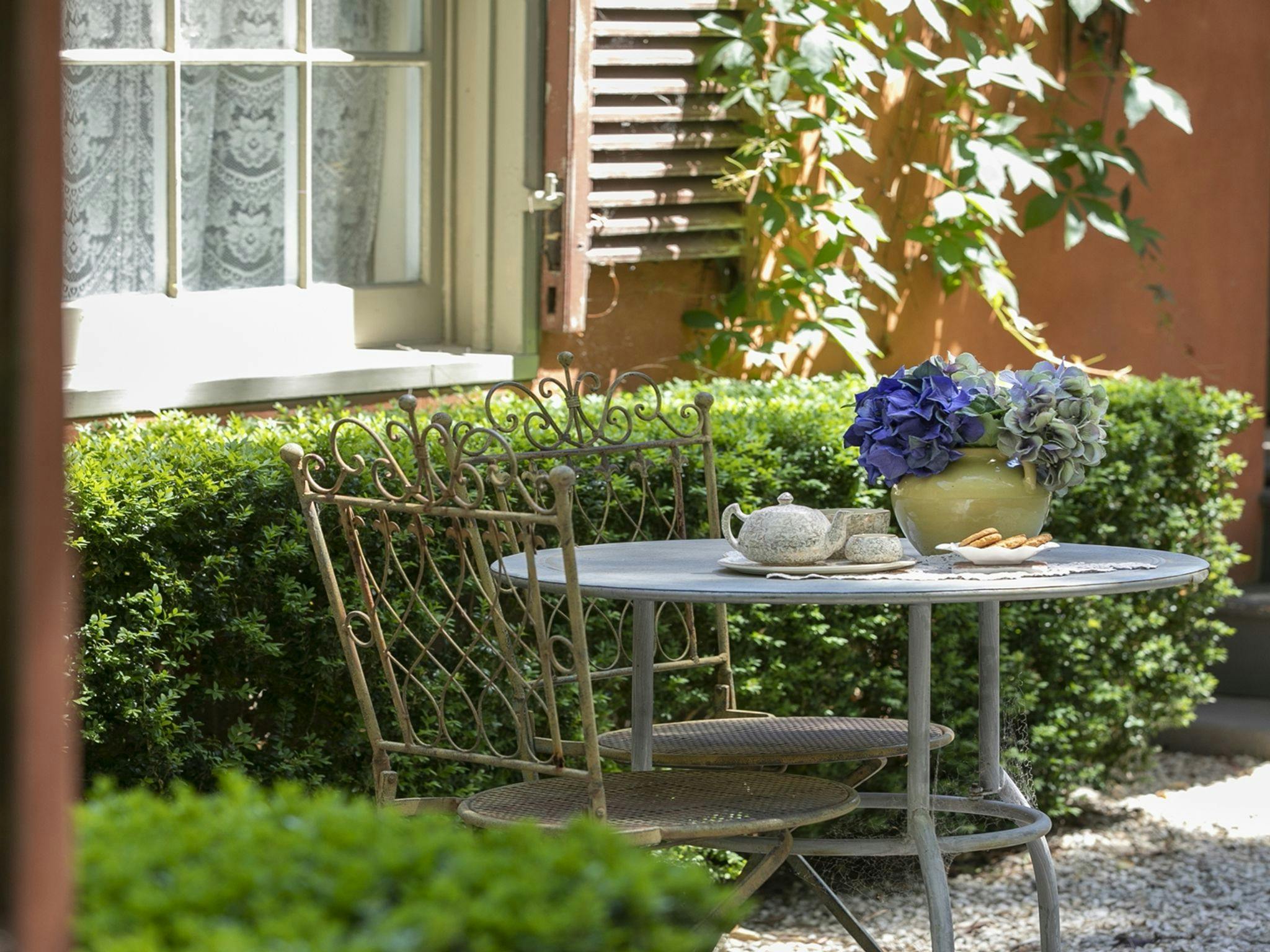 At Saint Eloi, le jardin, all the furnishings, crockery and bits and pieces are in keeping with the theme yet complemented by modern conveniences such as an oven, dishwasher, microwave, smart television, Wi-Fi and shared laundry facilities. There is a courtyard area designated for your private outdoor entertaining and relaxation.