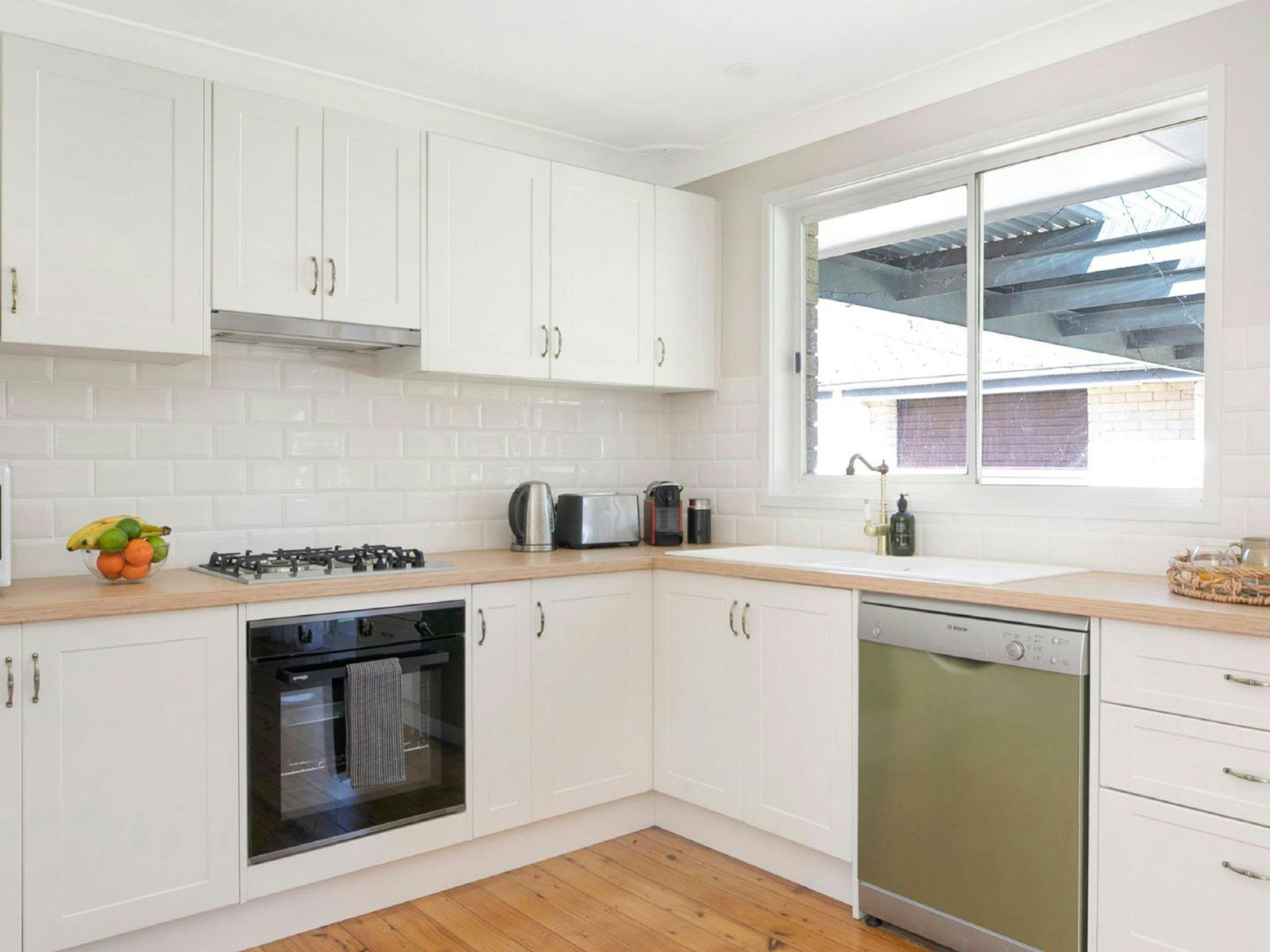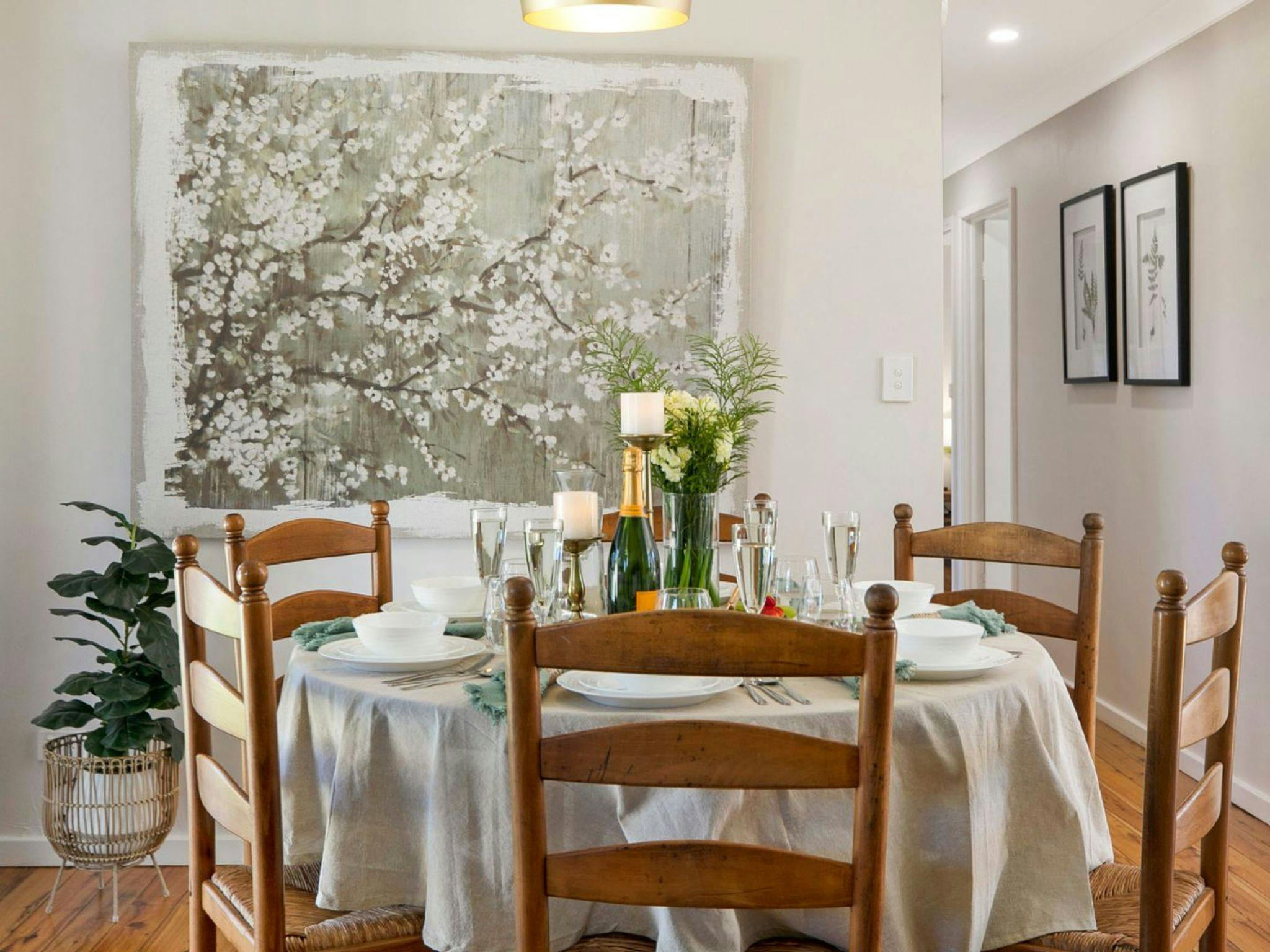 The well-lit kitchen and dining area exude an open and airy atmosphere, where you can enjoy breakfasts together. From the open-plan living area, you can step out to the covered outdoor dining area. Following a delightful meal around the al fresco table, you can unwind in the enclosed yard. Delighting in each other\'s company, you can gather around the fire pit at dusk, where you can relish drinks while being entranced by the flickering flames.