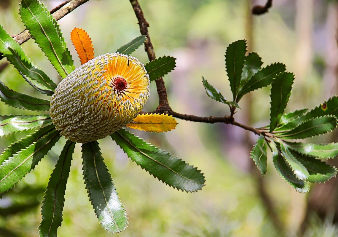 An old man banksia flower blooming yellow-green, Fitzroy Falls