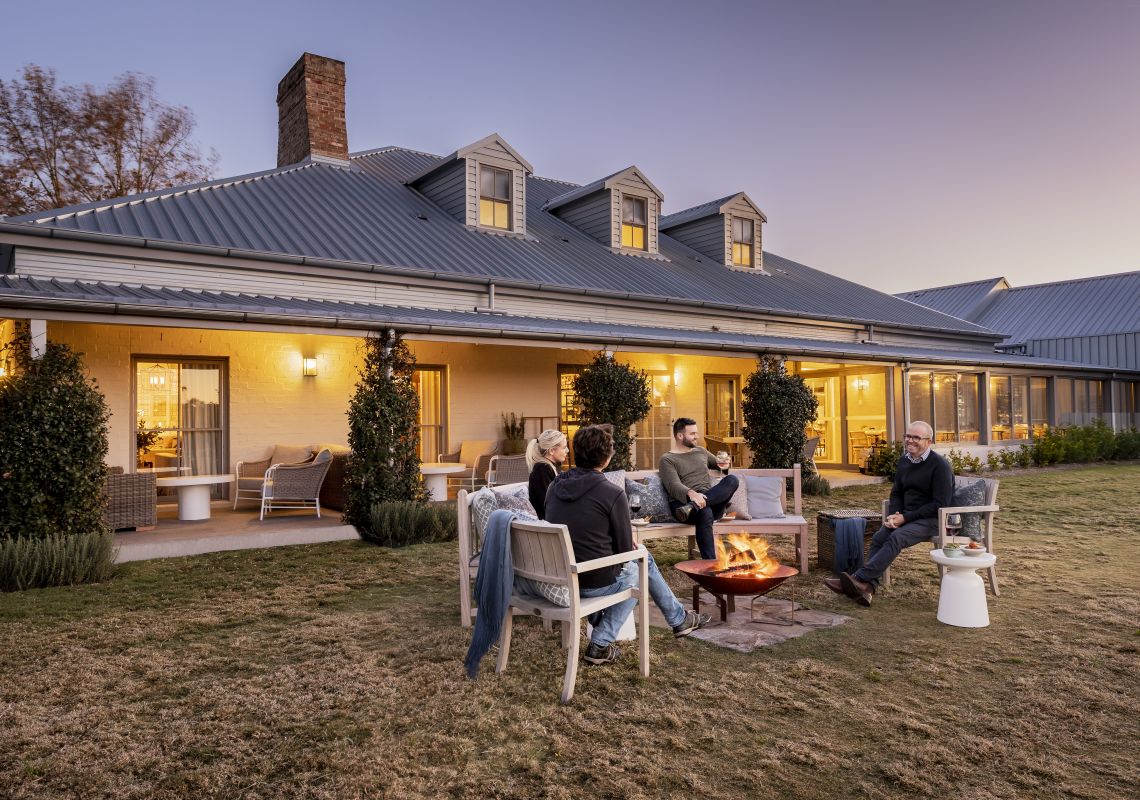 View of a group around a firepit at Spicers Guesthouse, Hunter Valley