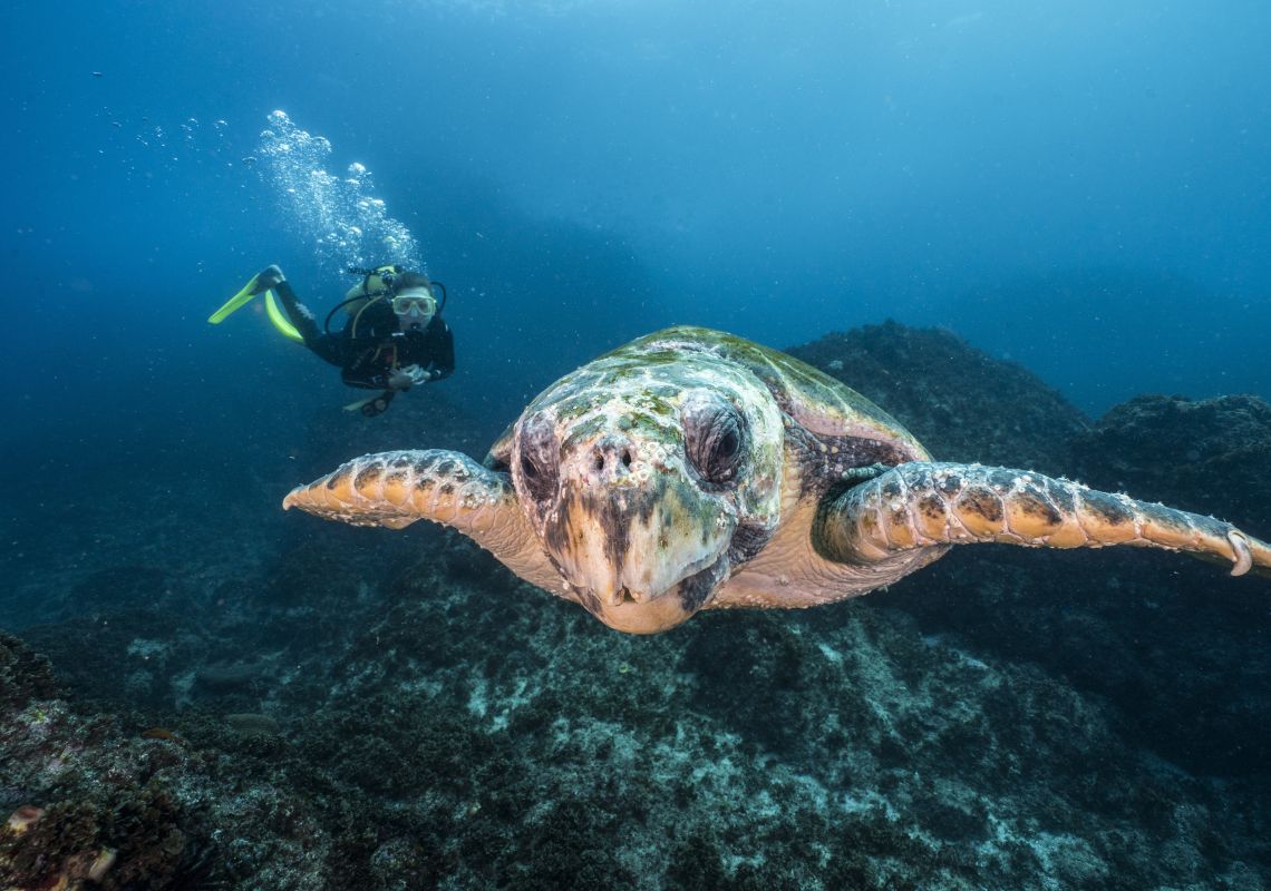 Scuba diver watching a turtle on a scuba dive at Julian Rocks in Byron Bay, North Coast