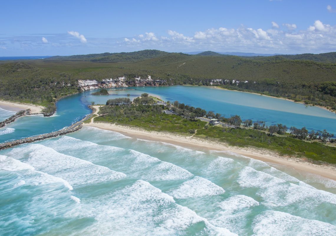 Set on a narrow three-kilometre peninsula between the Pacific Ocean and the Wooli River, the tiny town of Wooli is a water-lovers paradise, with surfing, swimming, fishing, snorkelling and diving on offer.