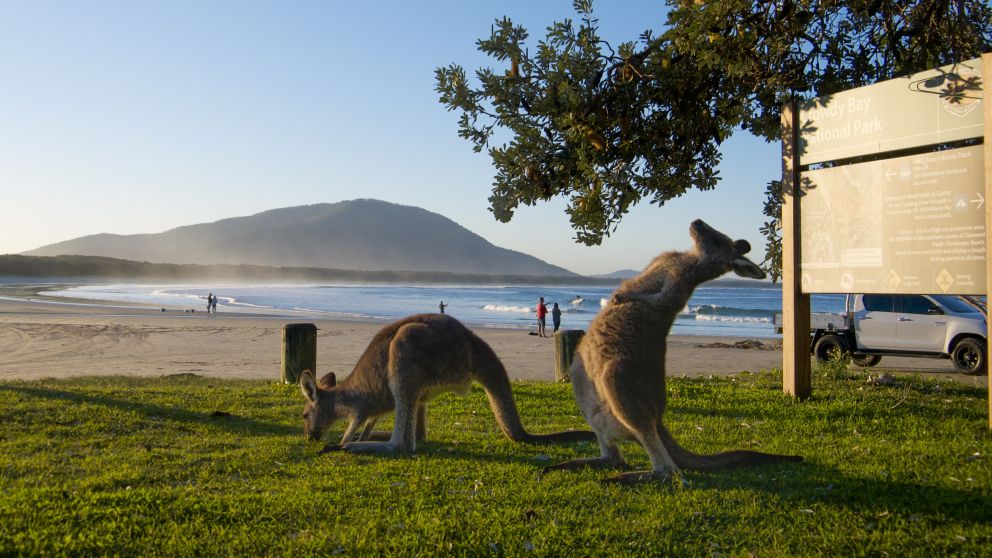 In Saltwater National Park, the Headland Walking Track leads through rainforest to the headland, where there is a viewing platform to spot migrating humpback whales from May to November. Saltwater Picnic Area is a place of major significance to the local Biripi people. The area has free-to-use barbecues and the lagoon provides safe swimming for families.