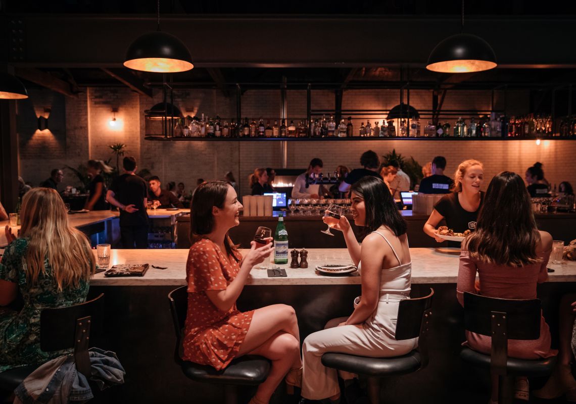 People enjoying an evening drink in the bar at the Grain Store, Newcastle