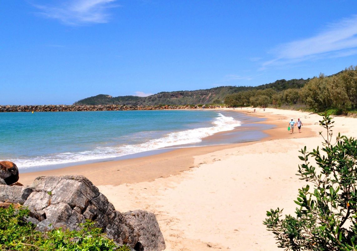 For more perspective, head to the Charles Hamey Lookout. Sit on the clifftop and admire magnificent vistas over Gogleys Lagoon, with North Brother Mountain in Dooragan National Park providing a dramatic backdrop. Gaze across the golden sands of Dunbogan Beach as it sweeps around to Diamond Head in Crowdy Bay National Park. You’ll see plenty of birdlife, and you may even be lucky enough to see a peregrine falcon flying high above.