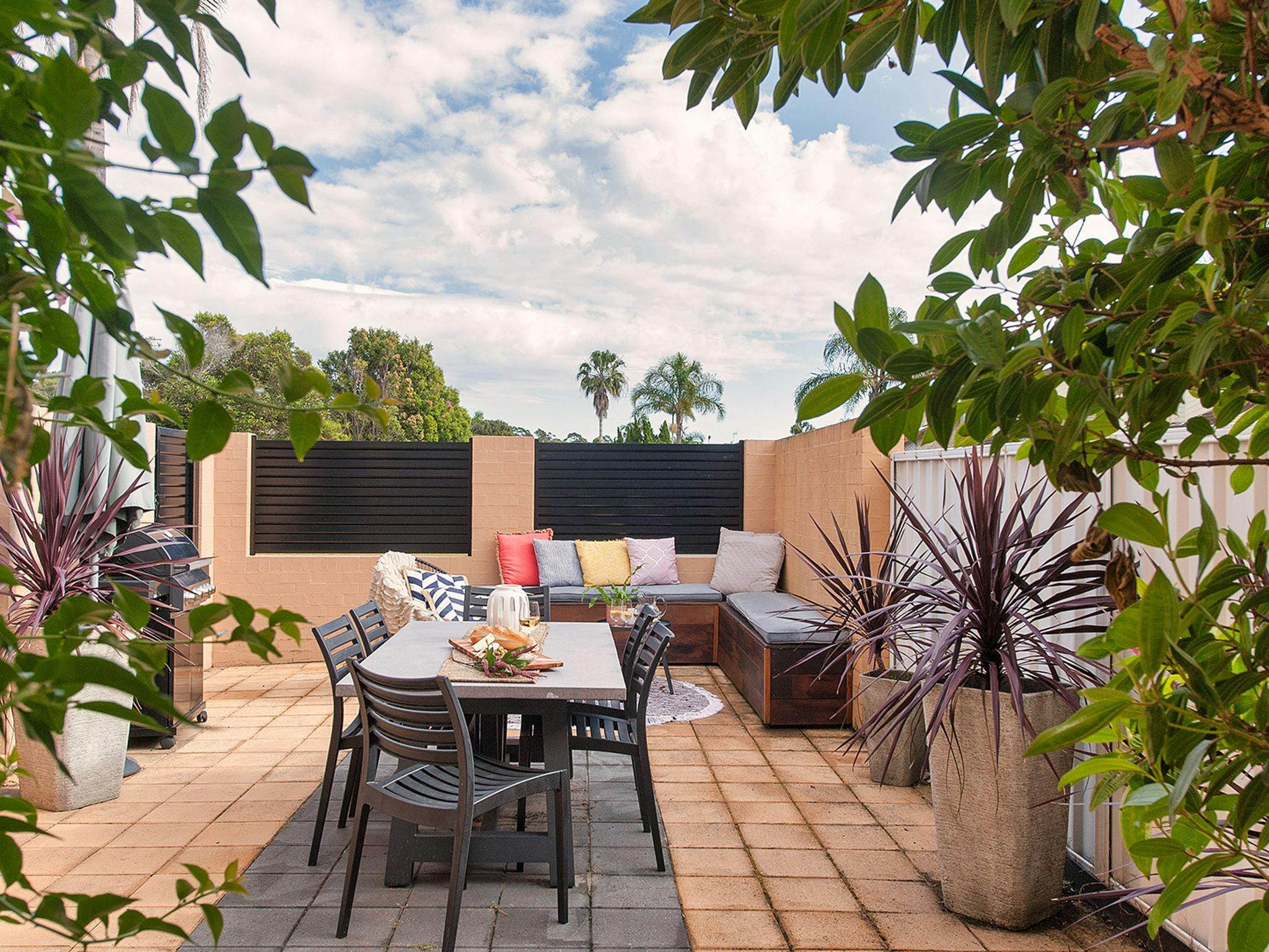 A well-appointed open plan living, dining with entertainer's kitchen opens onto a private paved courtyard through two sliding doors, wrapping around to an outdoor dining table and barbeque. Ideal for alfresco dining or letting the breeze in.