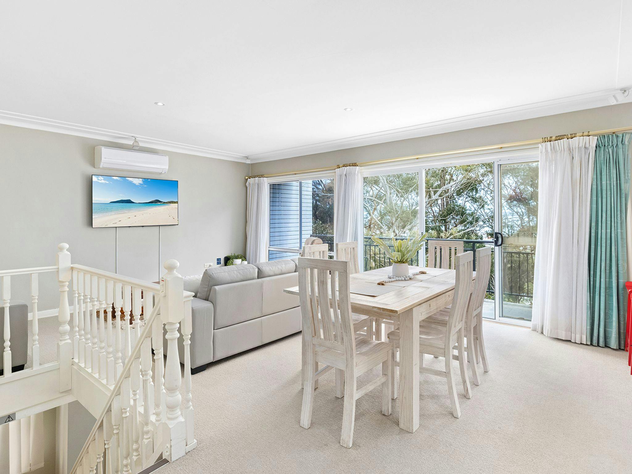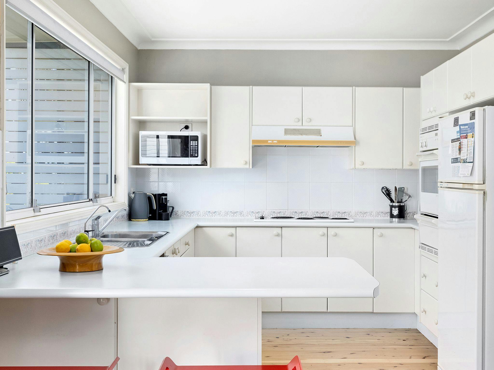 Three bedrooms, the upstairs main with King bed splits into two King Single beds if required, air conditioning and a large built-in robe. The second upstairs bedroom has two single beds, a built-in robe and a ceiling fan. The third bedroom situated downstairs has two single beds, stand-alone fan/heater and a second bathroom.