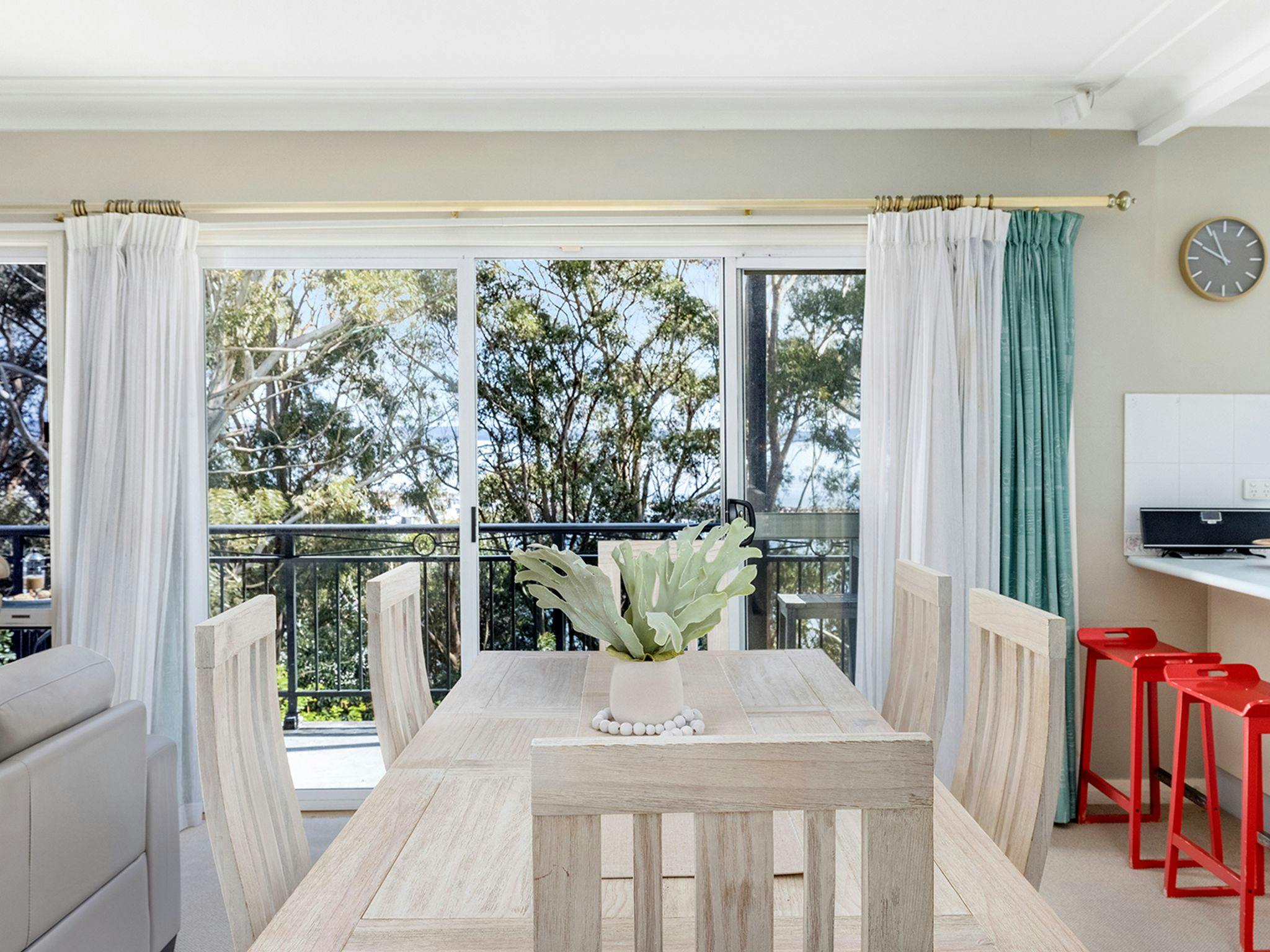 Air-conditioned in the main living area and the main bedroom. With open-plan living, kitchen and dining areas, looking out across the balcony to the Marina views makes the home a tranquil place to relax. A smart television and complimentary Wi-Fi are available for entertainment. A barbecue is located on the private balcony taking in the views through the trees. The kitchen has a microwave, oven, cooktop and dishwasher and coffee machine.