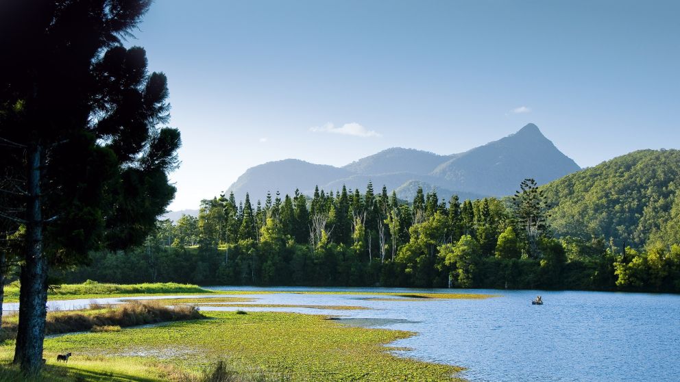 At Clarrie Hall Dam, a tributary of the Tweed River, you can launch a boat and go fishing for bass, or glide your canoe out for a paddle around this immense waterway ringed with lotus flowers and lilypads. Northern Rivers Sportfishing offers a kayak fishing tour on the dam and river, which winds past Uki on its way to the sea.