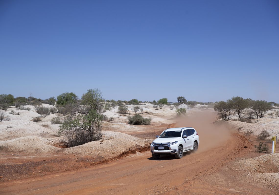 4WD driving along an unsealed road in Mungo National Park in Mungo, Outback NSW