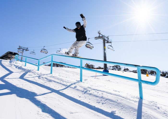 The Snowy Mountains is snow-packed with a huge range of world-class terrain parks, from slides and jumps to rails and rider cross courses to suit all skiers and snowboarders.