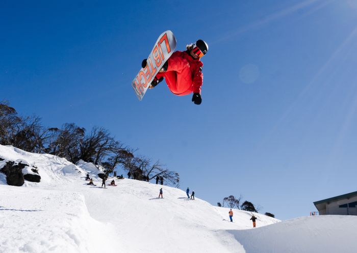 Charlotte Pass is an intimate, snowbound resort and a wonderful place for kids to learn, or for adults to chill out while still getting their turns in. There are two parks to check out, with Charlotte’s Play Park a great place to start. It has a range of mini jumps and snake trails, while more experienced riders can test their skills at the Freestyle terrain park which has a range of challenging features.