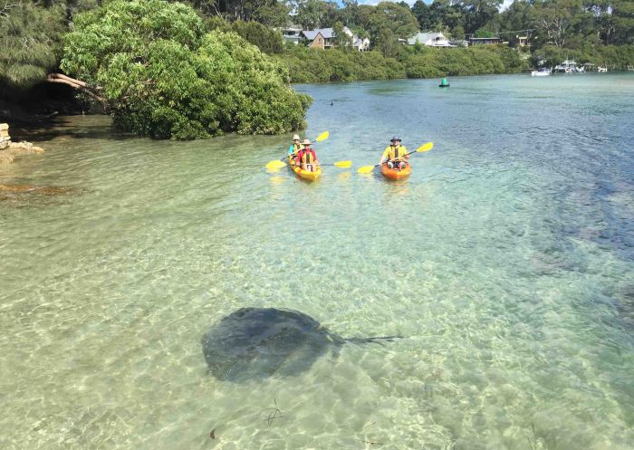Broulee Beach is dog-friendly and your four-legged friends are welcome 24 hours a day. You can learn to surf or stand up paddleboard at Broulee Surf School and Surf the Bay Surf School, or hire a SUP and go exploring on the rivers and creeks near Broulee. The aqua marine water is clear and there is so much to see, including large spotted stingrays, soldier crabs, eagle rays and a rich array of birdlife.