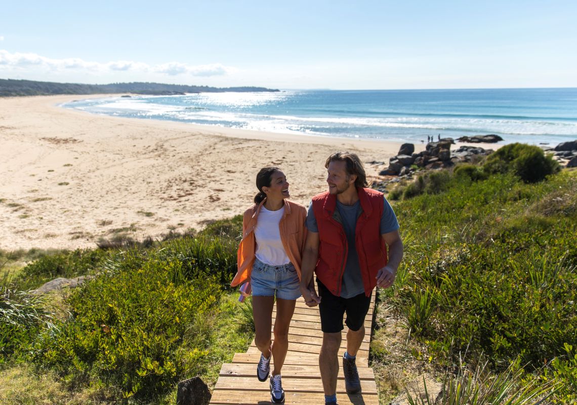 For breathtaking views of the coastal lakes, follow the Gulaga Mountain Walk from the Tilba foothills to Mount Gulaga, an extinct volcano in Gulaga National Park. The views from the top are magnificent. The Bingi Dreaming Track follows in the footsteps of the Brinja-Yuin people and starts at Tuross Head, while in Broulee the 4km walk around Broulee Island is spectacular.