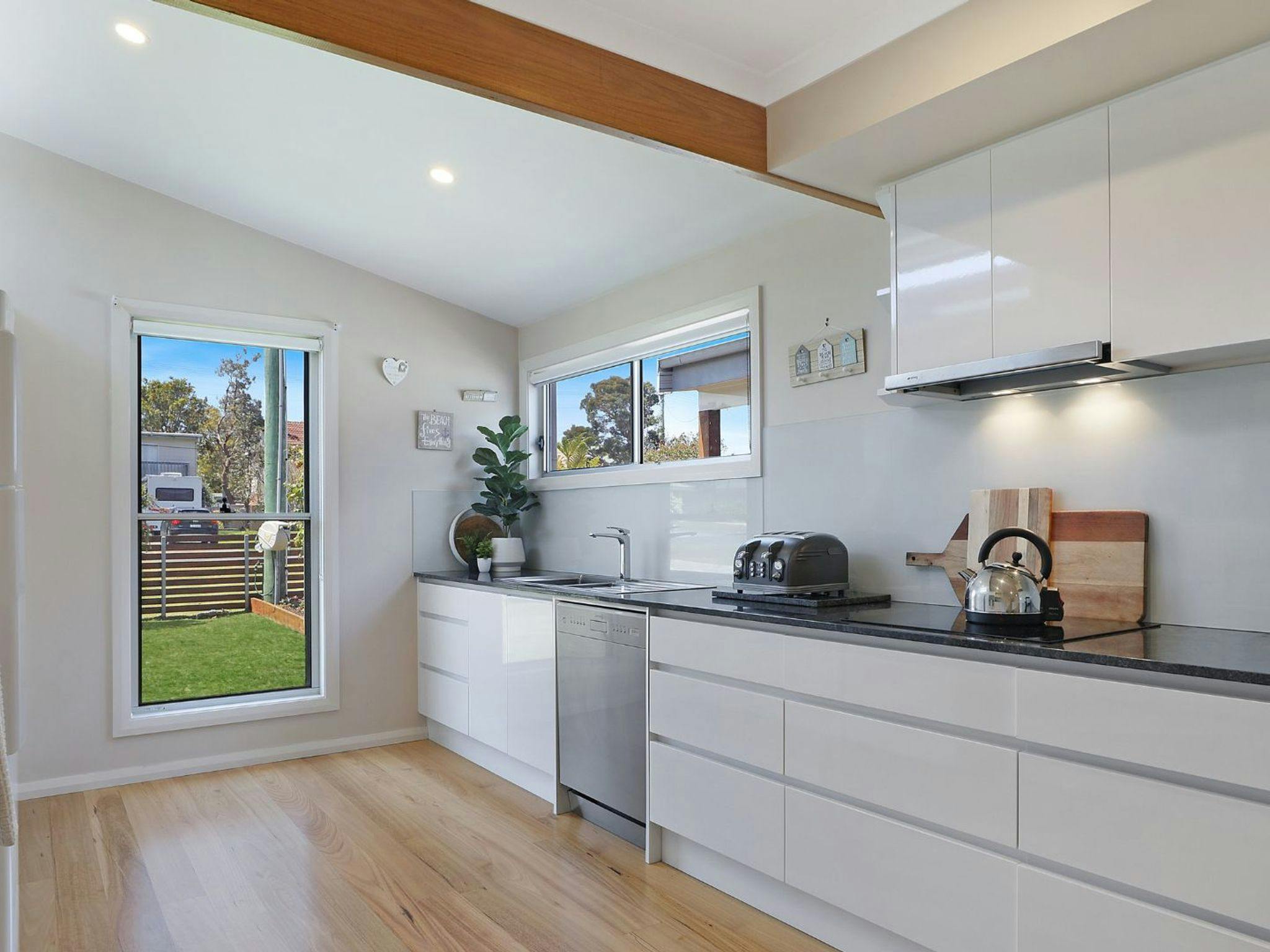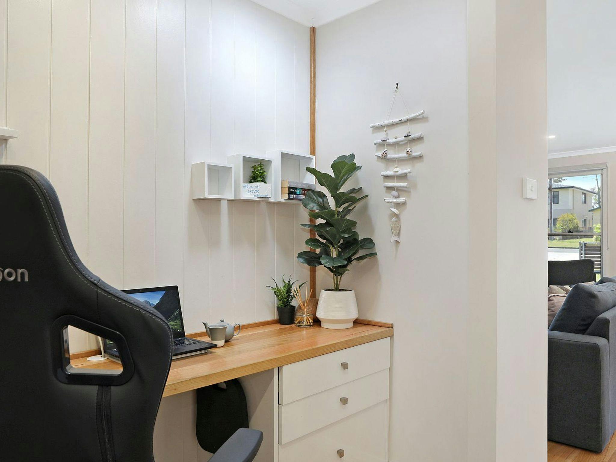 Coastal Bungalow in Callala Bay offers the perfect setting for a relaxing holiday. Inside, you’ll find a cosy family room with a daybed, smart TV, and board games for entertainment. Stay comfortable year-round with reverse-cycle air conditioning, a slow-combustion fireplace, and a ceiling fan. The fully equipped chef’s kitchen, complete with a dishwasher and coffee machine, ensures meal prep is a breeze, and there’s a laptop-friendly workspace if you need to catch up on anything.